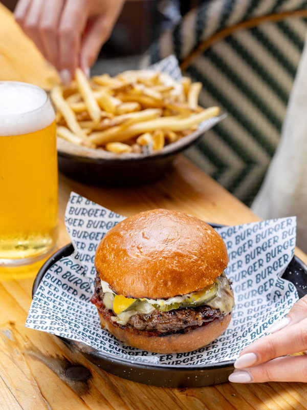 Enjoy a burger of your choice (beef, chicken, fish, or vege), served with either shoestring or curly fries, and washed down with either a lager beer or a homemade soda.