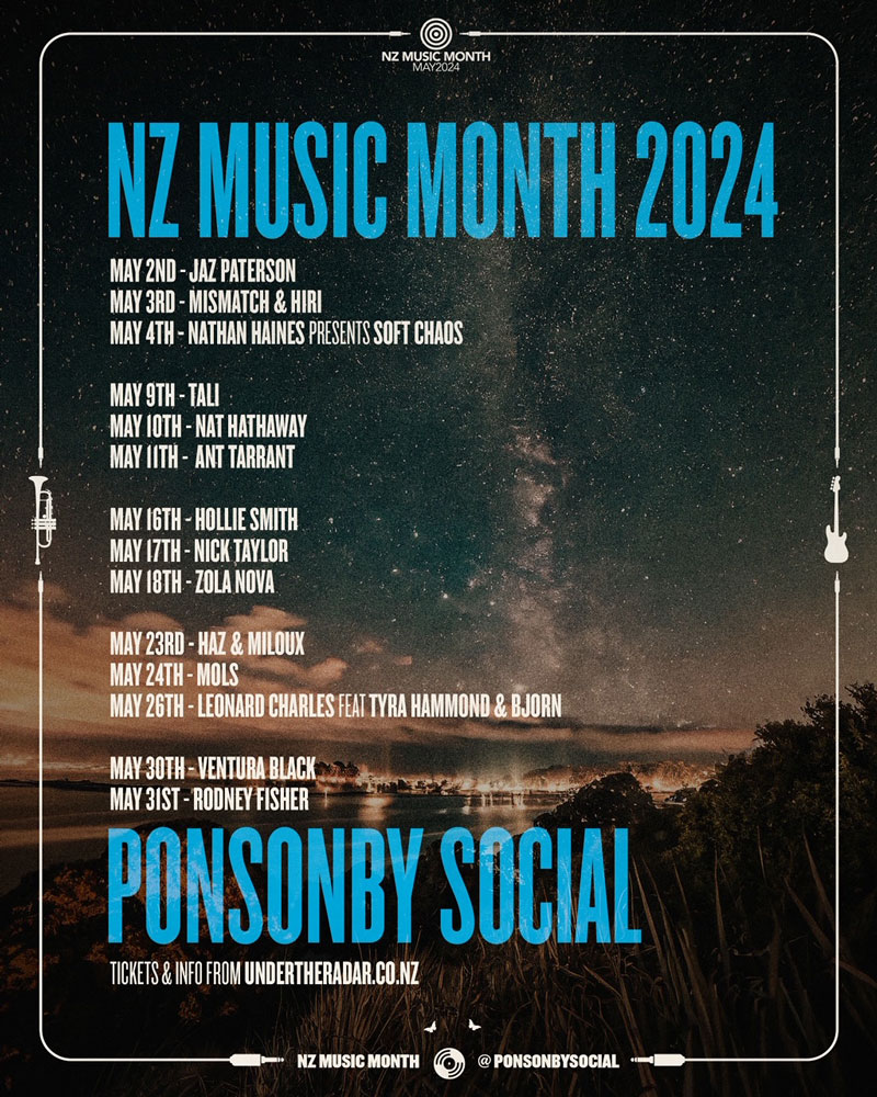 For this show as part of NZ Music Month at Ponsonby Social Rodney brings super special guests Fables, Sam Cullen & Cloudy.